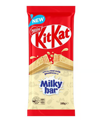 Indulge in the creamy crunch of KitKat Milky Bar 160g, straight from Australia! This delightful treat blends smooth white chocolate with the iconic crispy wafer layers you love.